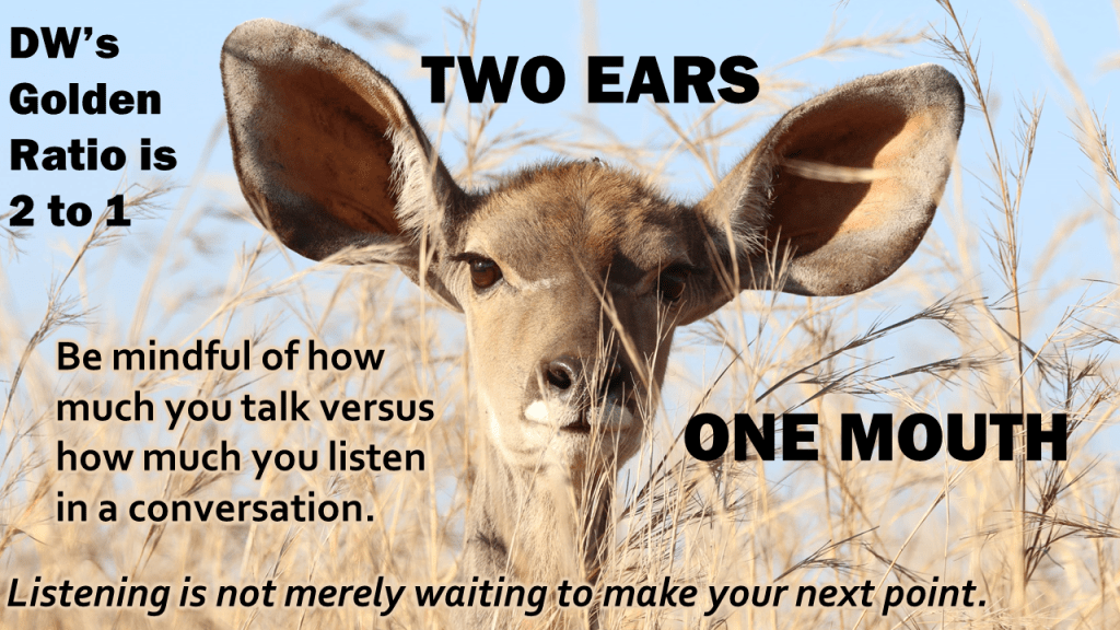 What if we let the conversation flow through good questions? What if we were able to deliver short, clean points at the perfect time? This is a more excellent way, and it requires advanced listening skills.