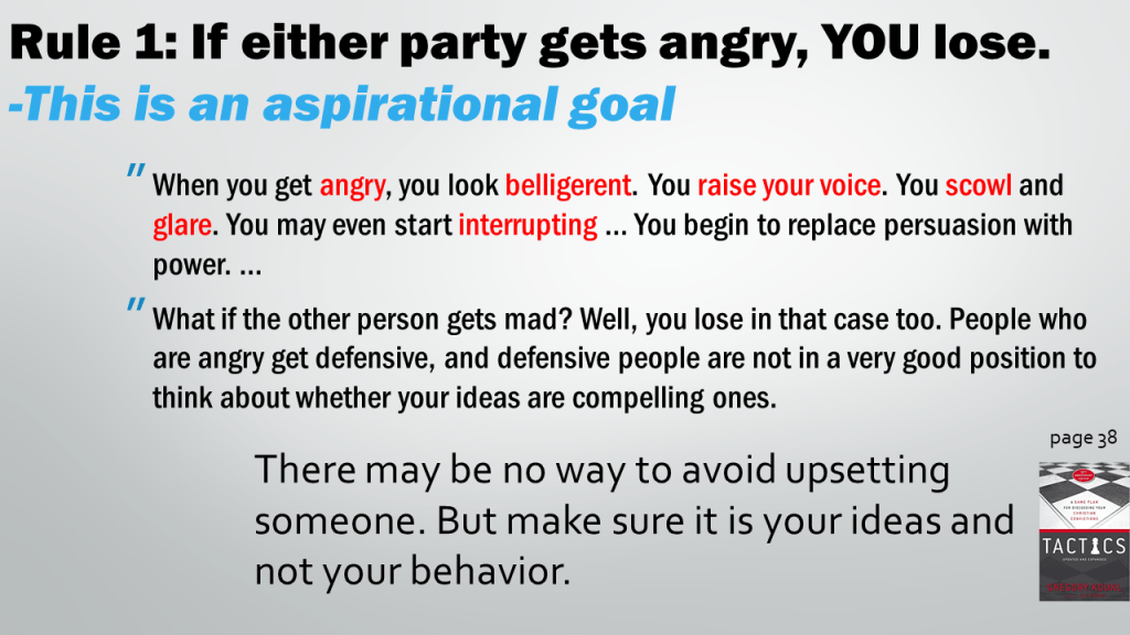 Greg Koukl is the author of Tactics – a Game Plan for Discussing your Christian Convictions, and his book has changed my life. It revealed my many conversational flaws and alleviated almost all of my conversational fears. Greg’s goal is to enable Christians to “get in the game” of discussing their deepest held beliefs with others.