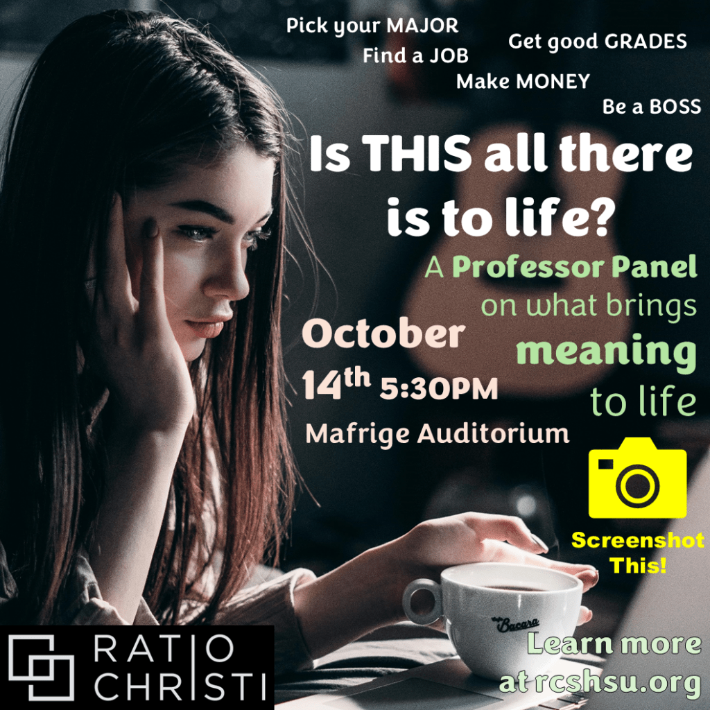 Ratio Christi is a Christian apologetics club that promotes thoughtful Christianity through discussion of Biblical answers to life’s deepest questions. The club’s regular meetings are Monday nights at 5:30 PM in the Chemistry and Forensic Science building room 123.